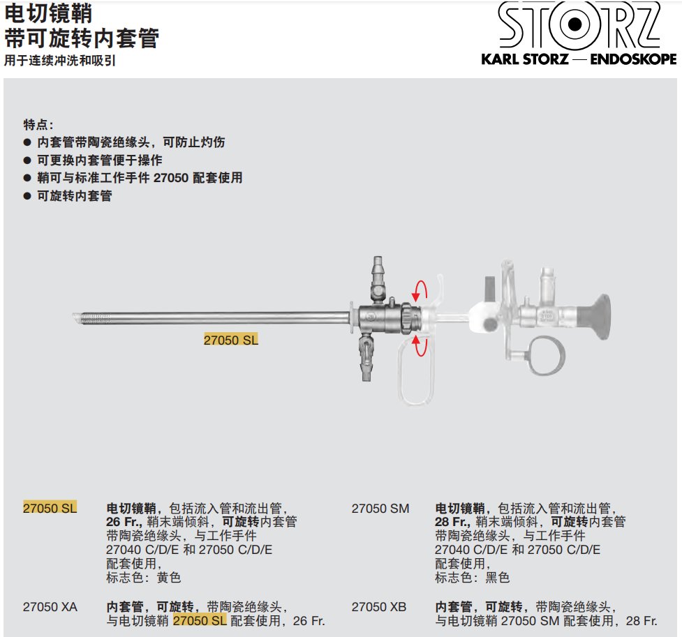 德国史托斯 KARL STORZ前列腺电切镜鞘27050SLK